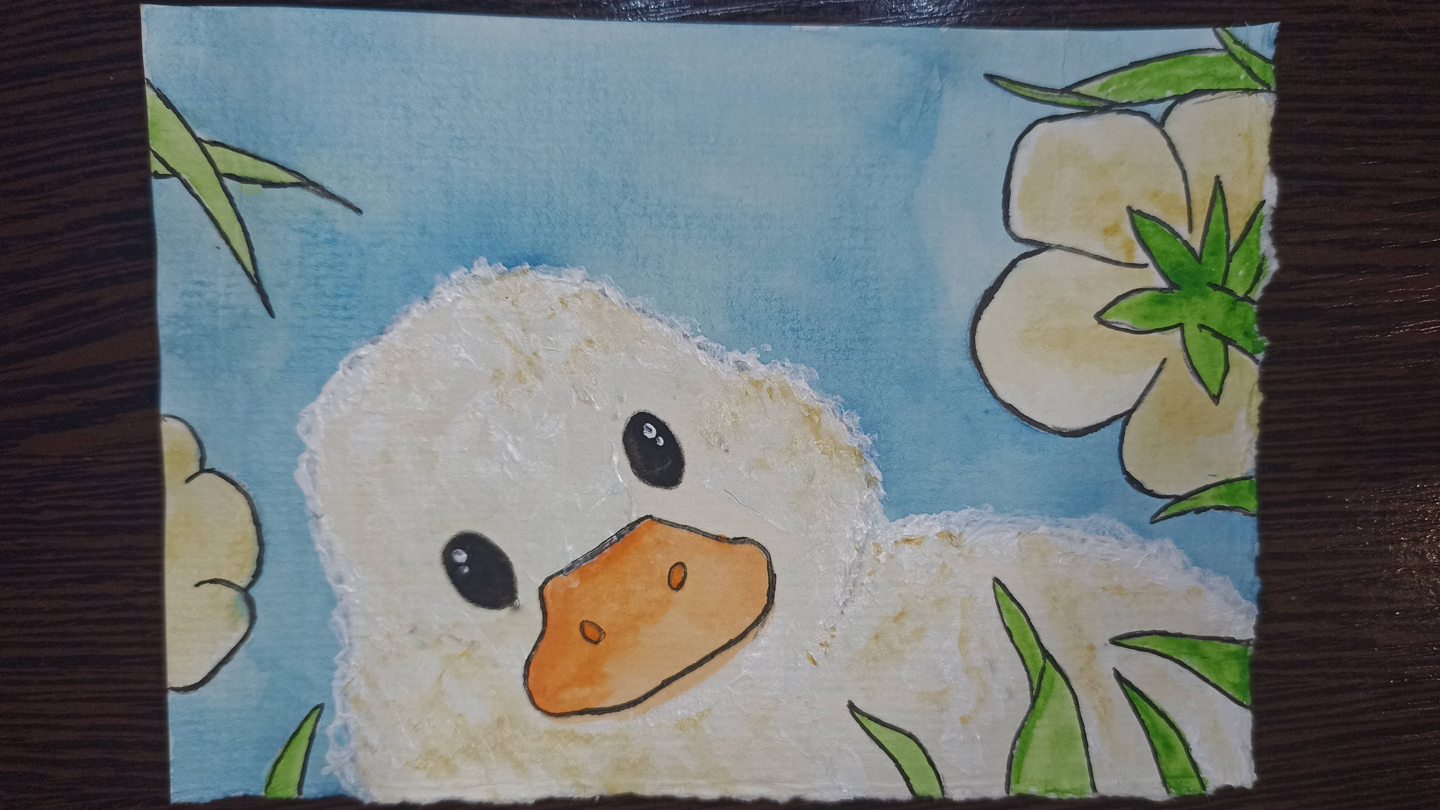 Утенок в траве / Рисунок акварелью