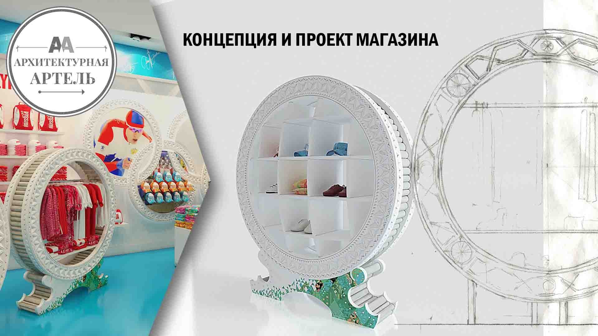 Создание концепции и эскизного проекта спортивного магазина. Разработка торгового оборудования от 2А