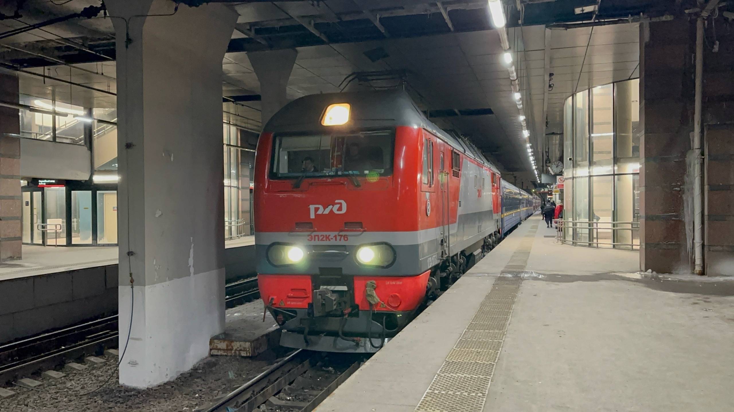 "Ночной!" Электровоз ЭП2К - 176 с пасс.поездом на Ладожском вокзале, февраль 2025 года