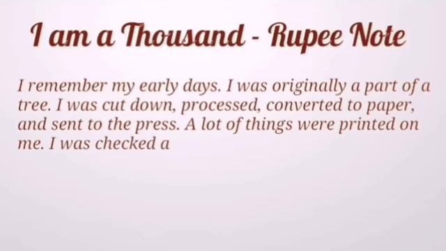 Essay on I Am A Thousand Rupee Note| 15 lines essay on I Am A Thousand Rupee Note Hii I am Suman Sahni welcome to our Youtube channel Suman's Academy ********************************************* Please subscribe my channel for more English essays. https://bit.ly/35qVgL7 ********************************************** Write an essay on I Am A Thousand Rupee Note How to write essay on I Am A Thousand Rupee Note Write a short essay on I Am A Thousand Rupee Note 15 lines essay on my I Am A Thousand Rupee Note Essay for kids on my I Am A Thousand Rupee Note #thousandrupee #note #essay #sumansacademy #shortessay For any doubt ask us in comment section below. For any suggestions tell us in comment section below. For any queries, contact us through Email.. Our Email address :Sumanacademy19@gmail.com Do like, share and subscribe...... Also see - Essay for class 4-https://rb.gy/d0qjjs Topics for class 4 essays are- Write an essay on my favourite sportsperson Write an essay on Chhatrapati Shivaji Maharaj Write an essay on Lokmanya Tilak Write an essay on Mahatma Gandhi Write an essay on The Policeman Write an essay on My Teacher Write an essay on My Best friend Write an essay on My Grandmother Write an essay on My Father Write an essay on My School Write an essay on My Farm Write an essay on The Zoo Write an essay on My Pet Animal Write an essay on The Swan Write an essay on Our National Bird Write an essay on Our National Animal Write an essay on Republic Day Write an essay on Eid-UI-Fitr / Ramzan Eid Write an essay on A Fair Write an essay on Annual Sports day Write an essay on Teachers' Day Write an essay on A Cricket Match I Witnessed Write an essay on A Rainy day Write an essay on The Banana Tree Write an essay on The Moon Write an essay on My Hobby Write an essay on My Favourite Storybook Write an essay on My Daily Routine Write an essay on If I Had Wings Write an essay on Our National Flower Write an essay on The Advantages of Computers Also see - Essay for class 2-https://rb.gy/6hvazq Topics for class 2 essays are- Write an essay on Myself Write an essay on My School Write an essay on My Mother Write an essay on My Grandmother Write an essay on My Daily Routine Write an essay on Policeman Write an essay on Christmas Write an essay on Independence Day Write an essay on Farmer Write an essay on Environment Day Write an essay on Best Friend Write an essay on My Class Teacher Write an essay on Id-ul-Fitr Write an essay on Teacher's day Write an essay on Rainy day Write an essay on Care of Our Teeth Write an essay on The Giraffe Write an essay on The Elephant Write an essay on National Animal Write an essay on National Bird Write an essay on Diwali Write an essay on Ganesh Chaturthi Write an essay on Raksha Bandhan Write an essay on My Pet Cat Write an essay on Birthday Party Write an essay on My School Routine Write an essay on My Life Story ( part 1) Write an essay on My Life Story ( part 2) Write an essay on My Favourite Dish Write an essay on My Aim in life Also see - Motivational Videos - https://rb.gy/fgorsm Also see - Animated Story - https://rb.gy/zwu2hr Also see - Hindi Story - https://rb.gy/svurek Also see - English Grammar - https://rb.gy/c2fjy8