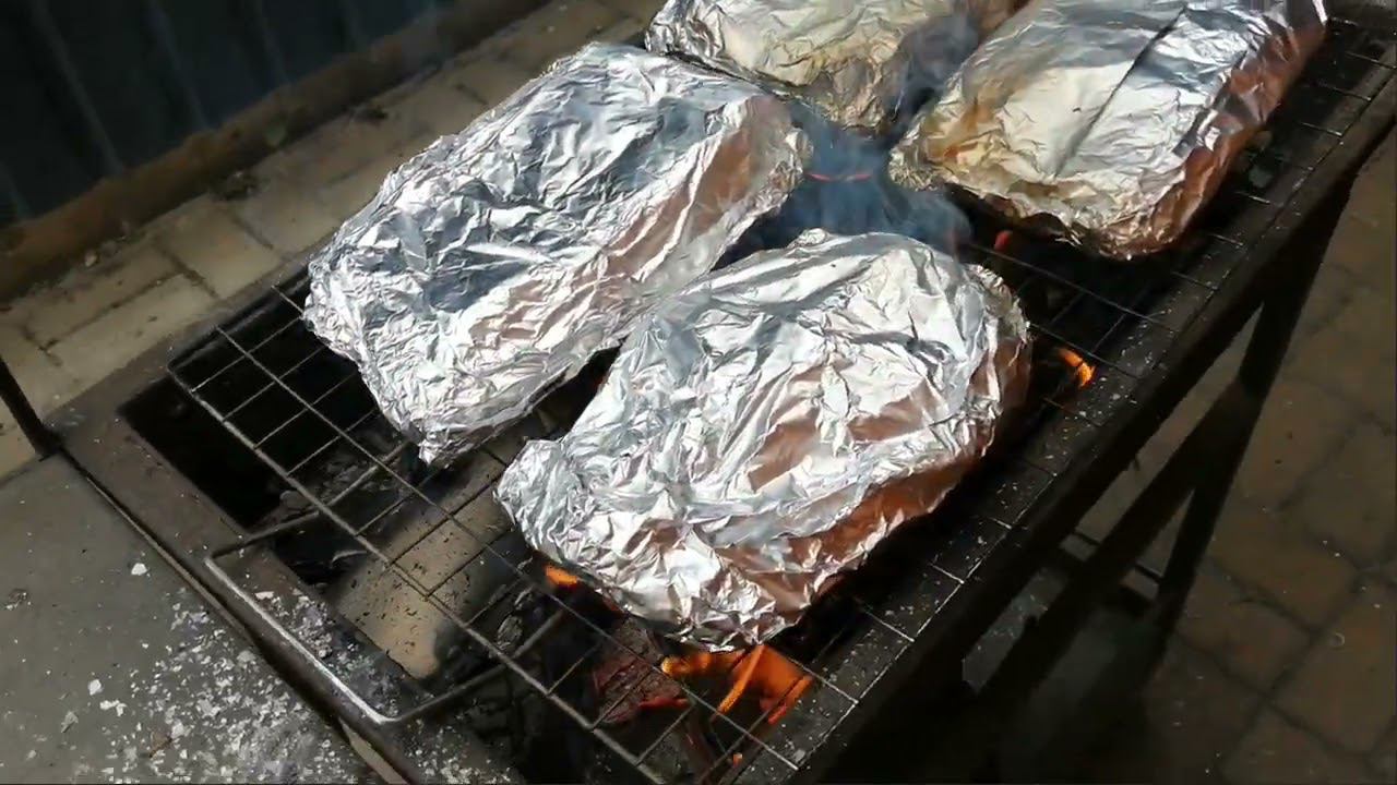 Ребра в фольге на решетке.
