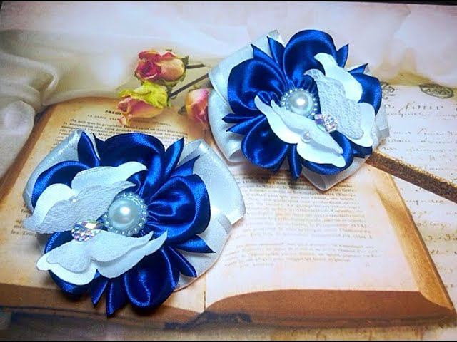 Бабочки 2D из атласных лент с цветами канзаши, школьные бантики