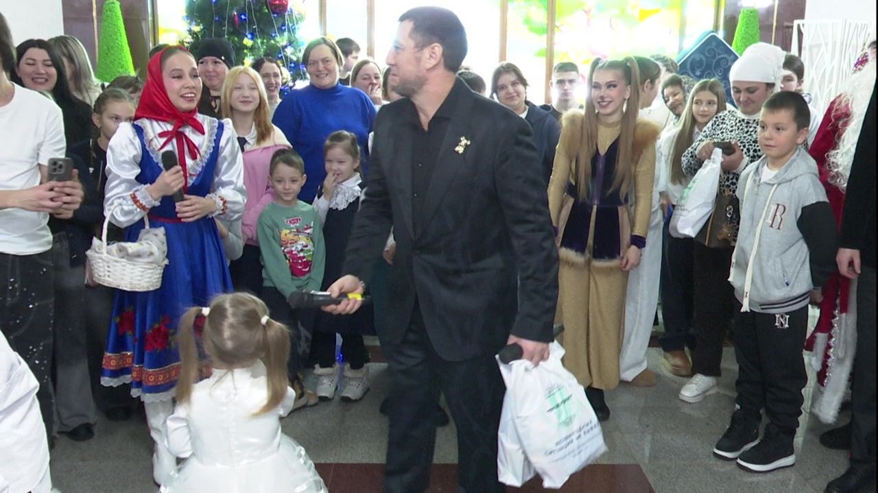 Наш земляк Фирдус Тямаев устроил для детей участников СВО веселое новогоднее представление