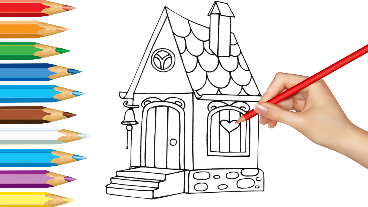 Показываю как нарисовать и раскрасить домик. Лёгкая раскраска для детей