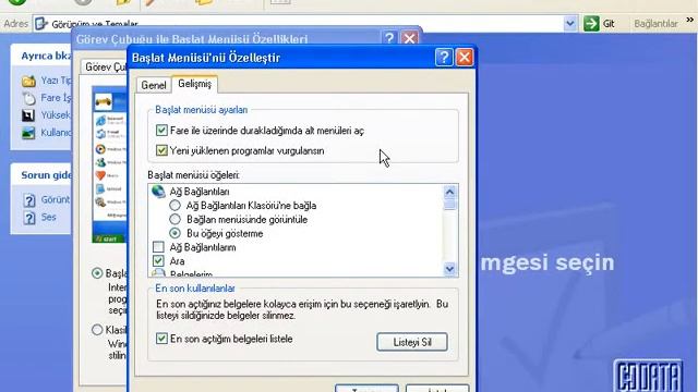 Windows XP Öğreniyorum 1: Başlat Menüsünü Düzenlemek