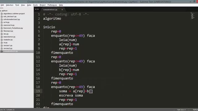 Resolução de algoritmo com implementação em Python. O algoritmo usa uma estrutura de repetição.