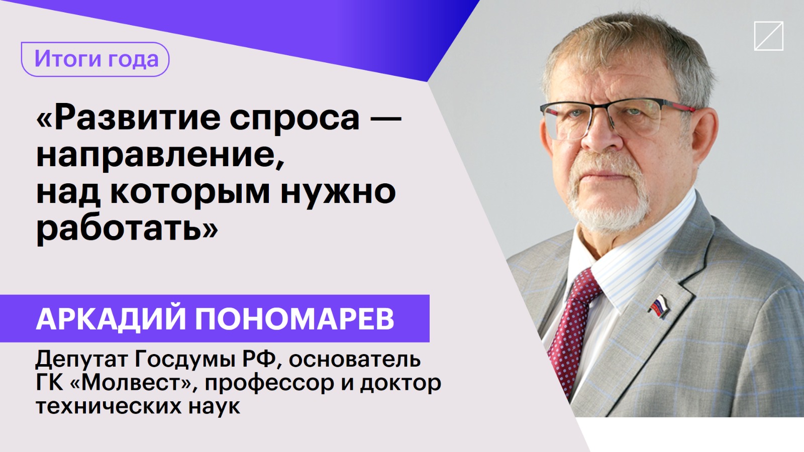Депутат Госдумы РФ, основатель ГК «Молвест», профессор и доктор технических наук Аркадий Пономарев — о ситуации в молочной промышленности, проблемах машиностроения для пищевой отрасли и выпуске ингредиентов для детского питания