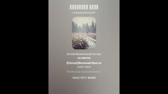 Автор слов текста песни Дюкова Татьяна. Использовать можно только с разрешения. АРАНЖИРОВКА ПЕСНИ и текста СДЕЛАНА С ПОМОЩЬЮ НЕЙРОСЕТИ. Нейросеть делает разные аранжировки на текст песен, используя свой алгоритм и музыкальную базу данных, поэтому каждая новая версия звучит как уникальное произведение. И песни получают каждый раз новое вдохновение и выходят в совершенно новом свете. Поэтому часто выкладываю вам из десяти песен написанных на один текст – несколько - выбирайте сами, что вам по душе И СЛУШАЙТЕ