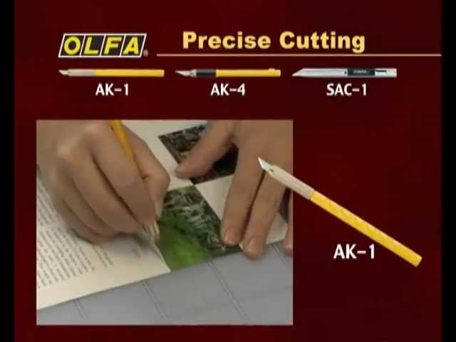 1. Дизайнерский нож OLFA (Олфа) AK-1 - это современный нож применимый для резки плёнки, бумаги, обоев, кожи; для фигурного вырезания, аппликаций и других художественных работ. http://zenonline.ru/cat/000013201 2. Нож OLFA (Олфа) AK-4 - это профессиональный нож для фигурного вырезания, для резки бумаги, кожи и других художественных работ. Данный нож имеет специальную мягкую резиновую рукоятку, обеспечивающую удобное удержание ножа при работе. Специальное устройство препятствует скатыванию ножа с поверхности. http://zenonline.ru/cat/000013203 3. Графический нож OLFA (Олфа) SAC-1 представляет собой ультратонкий современный нож с конструкцией из нержавеющей стали, который идеально подойдет для профессиональных художников-оформителей. http://zenonline.ru/cat/000014204