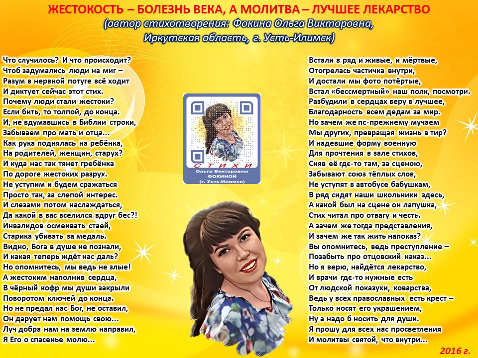 Ольга Фокина (Усть-Илимск) - ЖЕСТОКОСТЬ – БОЛЕЗНЬ ВЕКА, А МОЛИТВА – ЛУЧШЕЕ ЛЕКАРСТВО