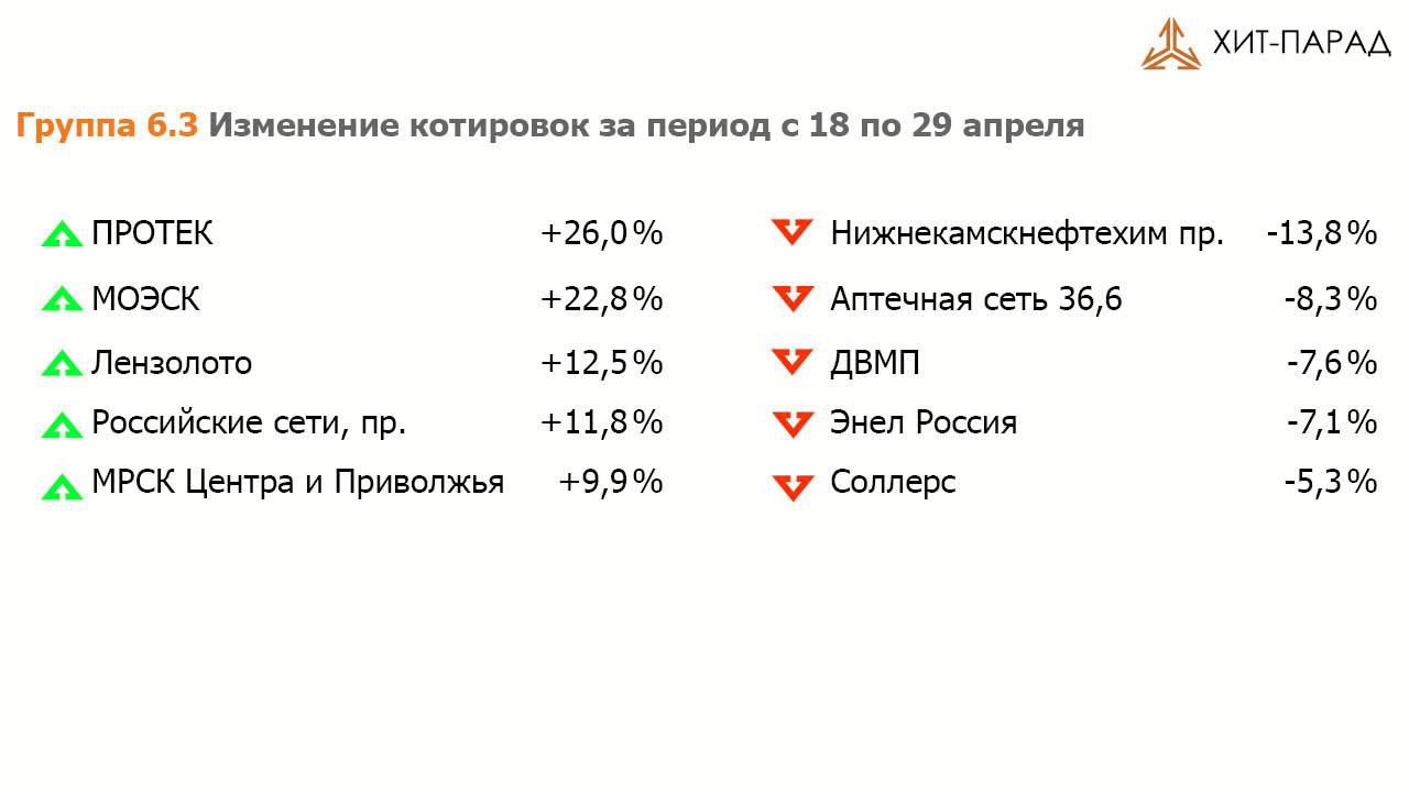 Видеопередача о динамике рынка акций за период с 18 по 29 апреля 2016 года. Хит-парад эмитентов на 18 апреля 2016 года