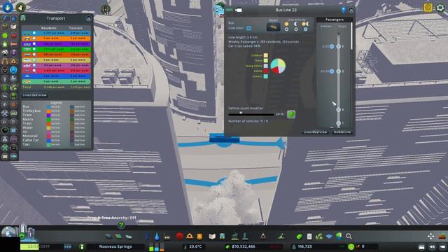 This video is a bit delayed partly because we’re back in school and partly because the editing software I use was glitching and I had to re-edit the video from scratch. There is a bit more discussion and less building in this video as I focus on how I conceptualize and manage mass transit in #nouveausprings. I place a lot of focus on integrating inter-modality transfer points into the landscape of the city--as well as (imperfectly) establishing a sort of mass transit hierarchy of modes (buses serve local circular trips, metro and passenger rail connect at an intra-city level, and monorail connecting the city together at an intra-regional level). The result is the ability to move between 9%-11% of the city’s population through buses, metro, passenger rail, and monorail. I do rely on all types of transit, but I manage the number of vehicles on the routes based on Cim demand--so the system is more efficient than it may appear when viewed in the infographic. At the beginning of the video, I briefly revisit the garden/park projects from the last video showing the updated flora and a small island park partially inspired by a post on Facebook about the Øresund Bridge connecting Sweden and Denmark (https://tinyurl.com/y4pfoz59). A key source for the previous video was the online article "10 Dazzling Gardens Around the World that Explode with Color and Character" from the website "My Modern Met." https://mymodernmet.com/famous-garden... . The only color theory I remember learning was in grade school, so I also did some background reading using these websites: https://tinyurl.com/zodhwn8, https://tinyurl.com/y946jnc6). Then finally, we count less than 20 pocket cars produced by several thousand Cims touring through the airport, monorail, metro hub integrated adjacent a tourist shopping and convention resort. With a well-planned mass transit network, “pocket cars” are a non-problem. As always -- this is a HOBBY not a profession; all constructive comments and feedback are welcome and appreciated. THANKS FOR WATCHING!!! No, Seriously ... THANKS FOR WATCHING!!! save game (with asset and mods list attached) can be found here: https://tinyurl.com/y64wxh6n Floral assets creators (rather than list every single floral or vegetation asset used--we’re talking hundreds--I’m going to list all the creators with links to their workshops): -- Smilies - https://tinyurl.com/y5v4o9ut -- Leo Mystic Magic - https://tinyurl.com/yy2x7pcl -- Breeze - https://tinyurl.com/y2k6u8gz -- MrMaison - https://tinyurl.com/y4y6ppgn -- templeofdoom - https://tinyurl.com/y45zmh5t -- pdelmo - https://tinyurl.com/yxgx44vd -- ArkenbergeJoe - https://tinyurl.com/y4fwkrcm Building Assets shown: -- 111W57 Tower by Luminou - https://tinyurl.com/yyqbshnq -- Elite Residence Dubai by Bibel Gurra - https://tinyurl.com/y5ljlcnv -- 64_Sherbourne_V2_52M by Reaper - https://tinyurl.com/y2phe7t6 -- Address Residence Towers 1 and 2 by Bible Gurra - https://tinyurl.com/yxqlymty, https://tinyurl.com/yyssowmt -- Cinema Condominiums by Reaper - https://tinyurl.com/yy9ku224, https://tinyurl.com/y47kmyjr, https://tinyurl.com/yyo4nyey, https://tinyurl.com/y3xdv6js -- Millennium Tower Residences (also) by Reaper - https://tinyurl.com/y5lpdyel, https://tinyurl.com/y5fhchfj, https://tinyurl.com/yxll4vqt, https://tinyurl.com/y5slvpk2 -- Joffrey Tower (x2) by Honker - https://tinyurl.com/y3z88kml Transport: also, the Bombardier Abstract high volume monorail train by REV0 makes an appearance: https://steamcommunity.com/sharedfiles/filedetails/?id=929695675&searchtext=bombardier+abstract Music: -- Zoom - Vibe Tracks (https://youtu.be/OtgwuZVpfaA) -- Land by Aden (https://youtu.be/3LrnR5jHAzY) -- Empire Seasons by Dan Henig (https://www.youtube.com/watch?v=nEtpU-7BDLM)