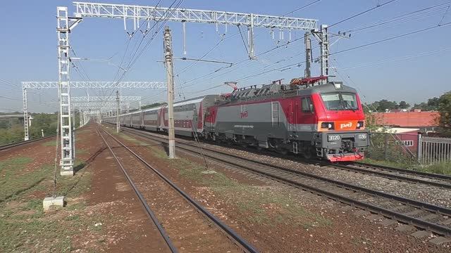 Электровоз ЭП20-036 (ТЧЭ-6) с фирм. поездом "Кавказ/двухэтажный состав" №004М Москва - Кисловодск.