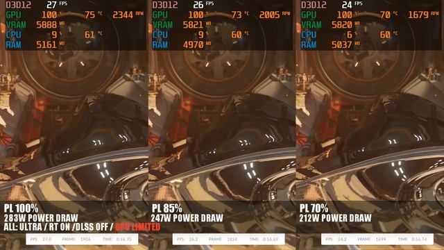 Comparing GPU Power Limit 100% 85% 70% with fps, temps, noise