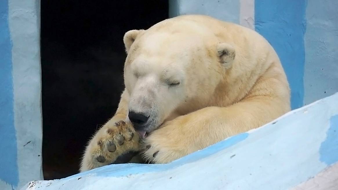 Белый медведь Кай так крепко спал, что уже день, а он не может проснуться!
