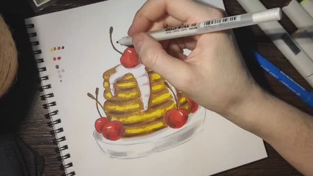 Как нарисовать блинчики с вишней урок №36