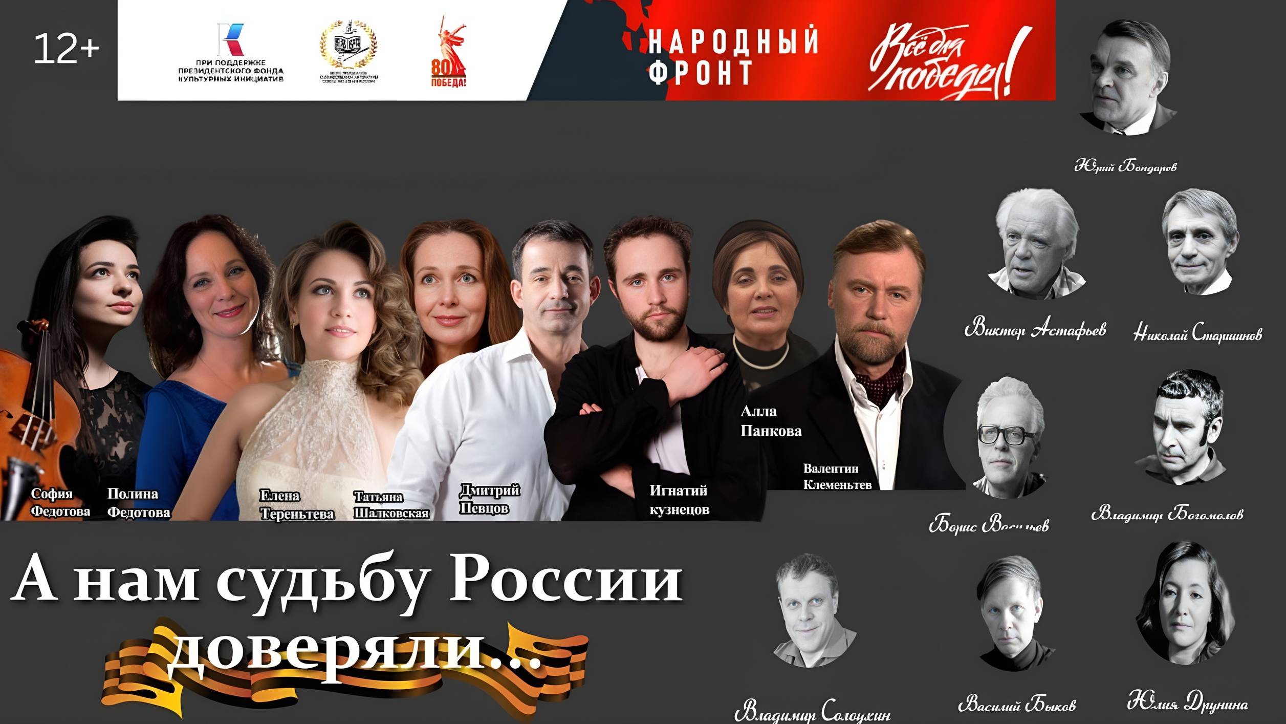 В рамках проекта Народного артиста России Дмитрия Певцова «А нам судьбу России доверяли…» Бюро пропаганды художественной литературы Союза писателей России, артисты проекта, «Народный фронт» выступают по стране с литературно-музыкальной программой "А нам судьбу России доверяли..." К 80-летию Великой Победы Дмитрий Певцов в проекте А НАМ СУДЬБУ РОССИИ ДОВЕРЯЛИ с песней Высоцкого. При поддержке Президентского фонда культурных инициатив (https://t.me/pfci_grants) Дмитрий Певцов (https://t.me/Pevtsov_Moscow) и Бюро пропаганды художественной литературы (http://t.me/litpersp) запустили серию литературно-художественных концертов «А нам судьбу России доверяли», посвященных творчеству писателей-фронтовиков. К 80-летию Великой Победы важно представить молодежи жизненный и творческий путь писателей-фронтовиков – признанного классика отечественной литературы основателя жанра лейтенантской прозы Юрия Бондарева, поэтессы Юлии Друниной, поэта Николая Старшинова, писателей: Бориса Васильева, Виктора Астафьева, Василя Быкова, Владимира Богомолова. Их произведения были воплощены в театральных, оперных постановках вошли во всемирно-известную киноклассику – кинофильмы: «Горячий снег» (реж. Егиазаров), «А зори здесь тихие» (С.Ростоцкий), «Восхождение» (Л.Шепитько), «Иваново детство» (А.Тарковский) и др. В программе приняли участие народный артист России и руководитель проекта Дмитрий Певцов, ведущие мастера искусств – народный артист России Валентин Клементьев, заслуженная артистка России, артистка МХАТ им. Горького Татьяна Шалковская, заслуженная артистка России, профессор Московской государственной консерватории им. П.И.Чайковского Полина Федотова (фортепиано), заслуженная артистка Республики Башкортостан, солистка театра «Новая опера» им. Е.Колобова Елена Терентьева (сопрано), артист Малого театра Игнатий Кузнецов, лауреат международных конкурсов София Федотова (скрипка). Ведущая программы – директор Бюро пропаганды художественной литературы Алла Панкова. Ждем вас на нашем канале t.me/litpersp 💖📖 #Культура #Творчество #Россия #Грантдлякреативныхкоманд #АнамСудьбуРоссииДоверяли #СВО #Победа80 #Ялта #Крым #ПФКИ #Дмитрий_Певцов #Артек #Певцов #актер #Россия #Фронтовики #Культура #ХудожественнаяЛитература #Литература #Концерт #Слово #Классика #Музыка ~~~~~ www.litprop.ru - Наш главный ресурс "Бюро пропаганды художественной литературы" https://vk.com/litprop - наша группа в Вконтакте https://www.youtube.com/@user-cu5gp8bp7j Наш канал Youtube с записями мероприятий #Певцов #актеры #Россия #Фронтовики #Культура #АнамСудьбуРоссииДоверяли #Фондпрезидентскихгрантов #ХудожественнаяЛитература #Литература #Концерт #Слово #Классика #Пушкин #Лермонтов #Тургенев #Гоголь #Школа #Чехов #Музыка #Фортепиано #Скрипка #театр #спектакль #проект #Концерт #Панкова #Федотова #Терентьева #Кузнецов #Клементьев #Шалковская #Москва #КудаПойтиВМоскве #вечер #Чтение #цитаты #Классики