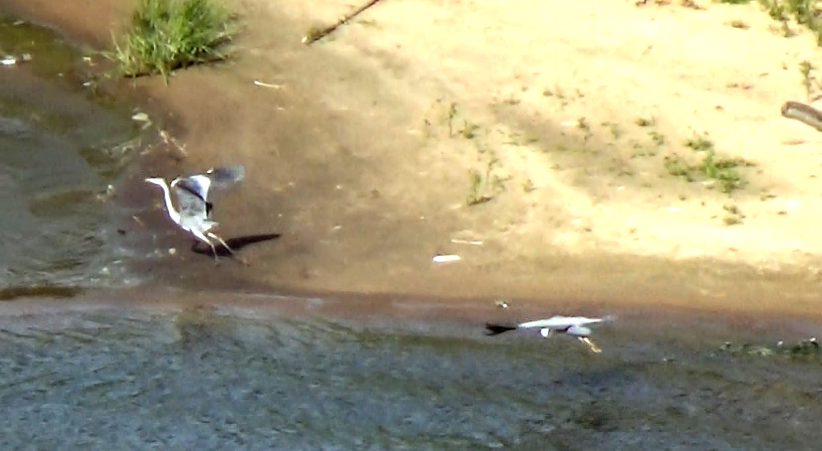 Серые цапли кружат над Клязьмой. Съемка с горы в Толмачово. Город Вязники