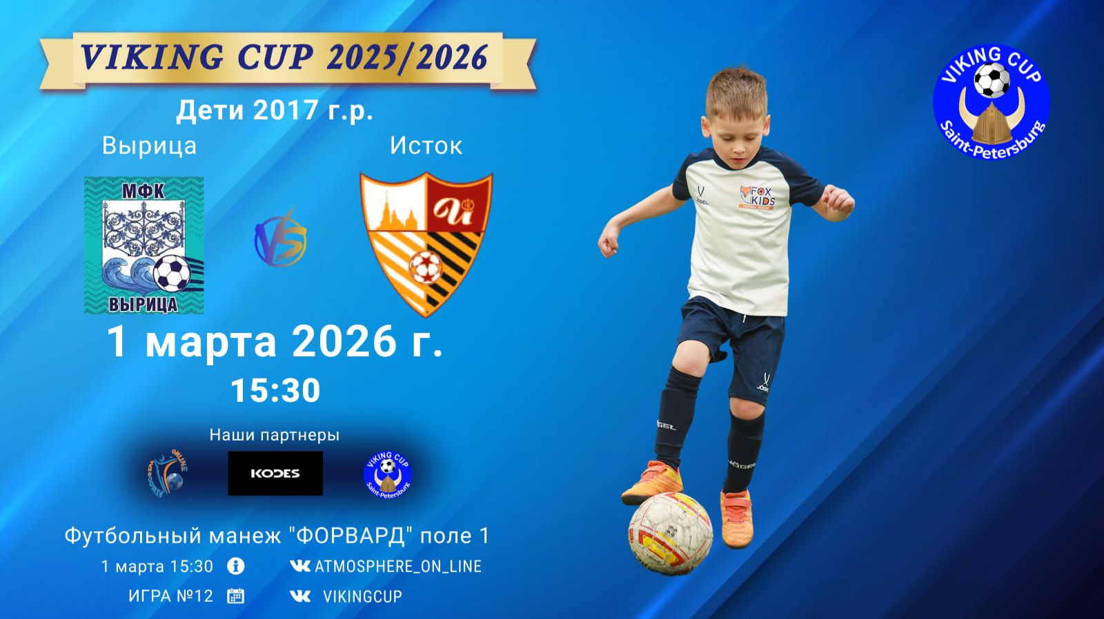 VIKING CUP среди команд 2017 г.р. (U9), Поле 1 1 марта 2026 САНКТ-ПЕТЕРБУРГ, ФЦ "Форвард" Вырица-Исток/VIKING CUP, Игра №12, 01-03-2026 15:30