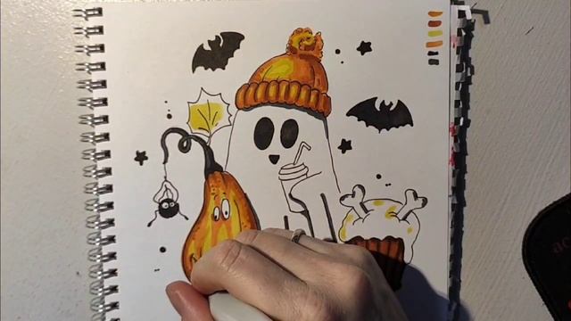 Как нарисовать очаровательное приведение в шапке? ( Halloween) Урок №55