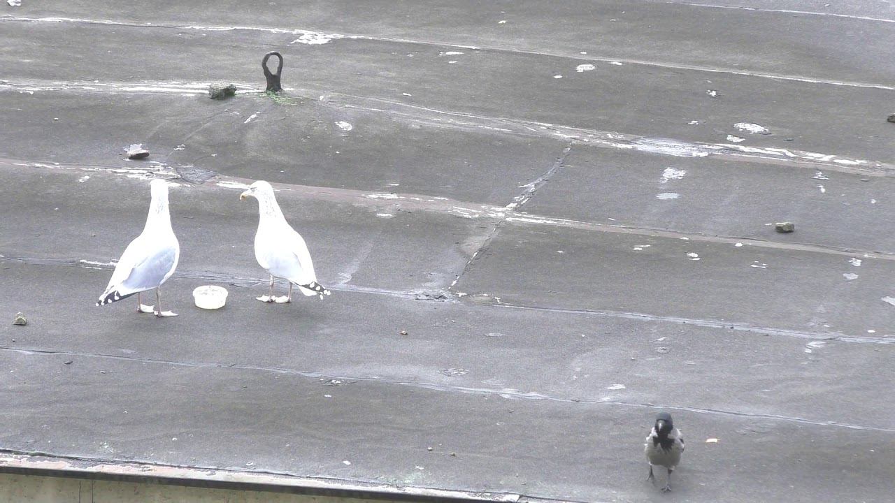 Ворона явно намеревается устроить какую-то каверзу. Но в одиночку против такой крупной птицы всё же не решилась