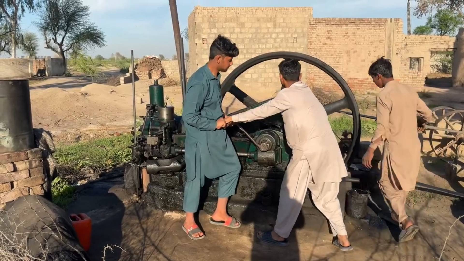 Пакистанцы втроем запускают ДИЗЕЛЬ 1929 года для хозяйственных нужд