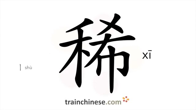 稀 (xī) scarce, uncommon; watery; sparse