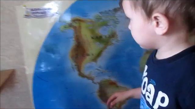 Артур (2 года) показывает страны на карте мира