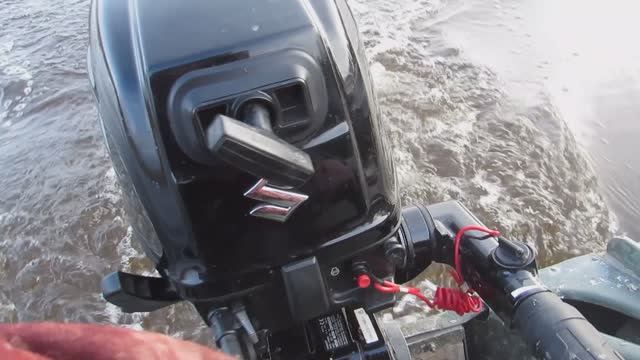 проверил расход лодочного мотора Сузуки 6 на полном газу на лодке Казанка.