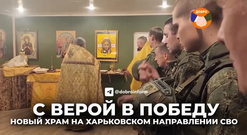 С верой в победу! ❤️ В тыловом районе зоны СВО военнослужащие своими силами возвели храм в честь епископа Ставропольского и Кавказского Игнатия Брянчанинова. Это место стало для бойцов особым – здесь они могут получить духовную поддержку. 🤝 После Божественной литургии воины причастились и пообщались с батюшкой. 🙂 Добро