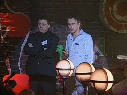 Официант Гавр и охранник Олег обсуждают игру на телефоне "Кто хочет стать миллионером?".