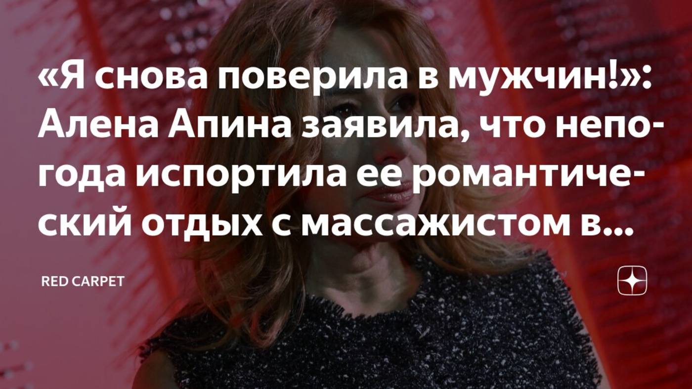 Похоже, в личной жизни Алены Апиной произошли перемены: звезда отправилась в отпуск в компании нового мужчины. Рассказываем, что известно о возможном романе.В распоряжении «СтарХита» оказались фотографии с отдыха 60-летней исполнительницы. По нашей информации, сейчас Апина и ее массажист находятся в Грузии. Они гуляли по набережной Батуми, наслаждались местными красотами, пробовали грузинскую кухню и отправлялись в горы. Сама Алена пока не подтвердила новый роман, поэтому этот вопрос остается открытым. Поклонники отмечают, что еще с прошлого года певица заметно преобразилась. Во время продвижения сериала-байопика о «Комбинации» публика восхищалась тем, как похорошела Апина. Позднее артистка рассказала, что сбросила 15 кг — именно в такой же отличной форме она когда-то выступала в «Комбинации».Знаменитость подчеркивала, что активно тренировалась: также к нагрузкам добавила и танцевальные репетиции. По словам Алены, достичь результата удалось благодаря дисциплине в питании — без этого никак. При этом слухи о том, что она использовала «Оземпик», певица опровергала. Апина признавалась, что не имеет ничего против подобных средств и, возможно, прибегла бы к ним, если бы спорт и диета не помогли, но в ее случае результат был достигнут естественным путем. Что касается личной жизни, после выхода сериала поклонники вновь вспомнили о ее романе с композитором Виталием Окороковым. Музыкант до сих пор с теплом говорит, что певица была его первой любовью.Напомним, Апина была замужем дважды. Ее вторым супругом стал продюсер Александр Иратов (в байопике его сыграл Павел Прилучный). Недавно певица вспоминала об этом браке, но, увы, не в самых приятных тонах — не секрет, что продюсер изменял звезде. «Да, их было много, даже говорить об этом не стоит. Вот такой он человек… Для него это не было изменой и чем-то грандиозным. Александр гулял на стороне, я знала, но делала вид, что всего этого нет. Мне редко говорили, что я любима, красива, талантлива, что я хорошая артистка. Иратов всегда считал, что у меня всего полно от зрителей и поклонников, но мне хотелось, чтобы эти слова звучали от мужа. Он никогда не дарил мне цветы. Это все копится-копится, и хочется, чтобы все было по-другому», — раскрывала она в программе «Судьба человека» с Борисом Корчевниковым на канале «Россия 1».