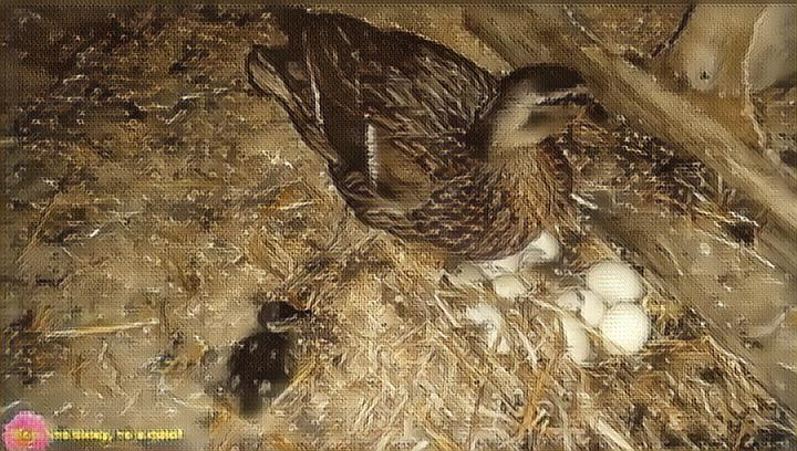 Когда были в деревне, то нам выпала возможность понаблюдать за уткой, сидящей на яйцах! Никогда не видела как утки это делают - теперь увидела!