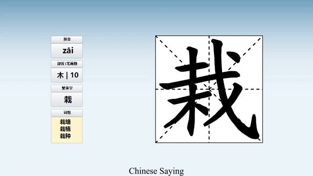 栽 (zāi) to grow; plant; insert; force on smb; fall head first