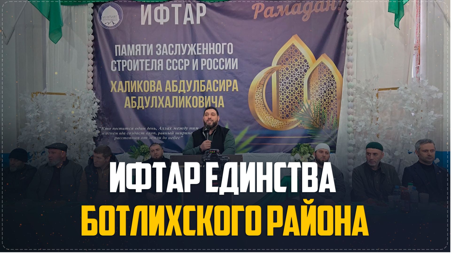 2 марта на базе Ботлихской ДЮСШ состоялся масштабный маджлис-ифтар единства памяти заслуженного строителя СССР и России Халикова Абдулбасира Абдулхаликовича. Организатором мероприятия выступили джамаат села Тлох и сын Абдулбасира Халикова предприниматель, меценат Шамиль Халиков. В маджлисе приняли участие глава района Руслан Гамзатов, председатель Собрания депутатов Магомеднаби Омаров, руководитель отдела примирения при Муфтияте РД в ГТО Газимагомед Абакаров, сотрудник отдела примирения Муфтията РД Гусейн Магомедов, полномочный представитель Муфтията РД в ГТО Алиасхаб Разаков, председатель районного Совета имамов Омар Алиев, богослов Алиасхаб Касумов, председатель молодежи Ботлихского района Абдулмуталиб Шахруханов, имам села Ботлих Запир Чупанов, имамы сел, жители района и другие. Открыл и вел маджлис сотрудник отдела просвещения Хасавюртовского района Камиль Шайихов. Камиль Шайихов, открывая мероприятие, поприветствовал присутствующих и пожелал добра и благодати, отдельно поблагодарил джамаат села Тлох за организацию и проведение маджлиса-ифтара. Гостей мероприятия ожидали выступления известных алимов, звучали аяты священного Корана, проповеди от духовных представителей, мавлиды и нашиды. Завершилась встреча коллективным ифтаром. Маджлис прошёл в атмосфере единства, духовного братства и дружеского тепла. Пусть Всевышний примет благие деяния каждого, кто принял участие в этом богоугодном деле.