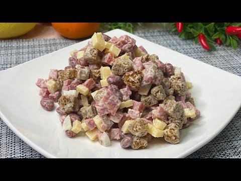Ингредиенты: Колбаса(копченая или полукоченая)-150гр. Твёрдый сыр-100гр. Консервированная фасоль-100гр. Майонез Соль, перец-по желанию Кириешки-1 п. Приятного аппетита! НЕ ЗАБУДЬТЕ, подписаться на наш канал уютный канал. Всем добра и до новых встреч!