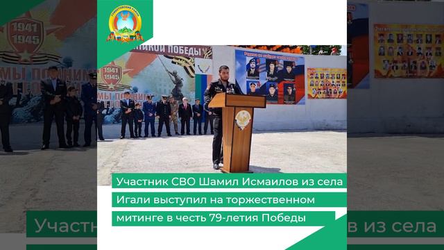 Участник СВО Шамил Исмаилов из села Игали выступил на торжественном митинге в честь 79-летия Победы