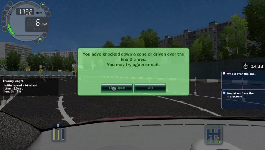 City Car Driving Track test FAILED-You knocked down the cone or wheel on the line 3 times