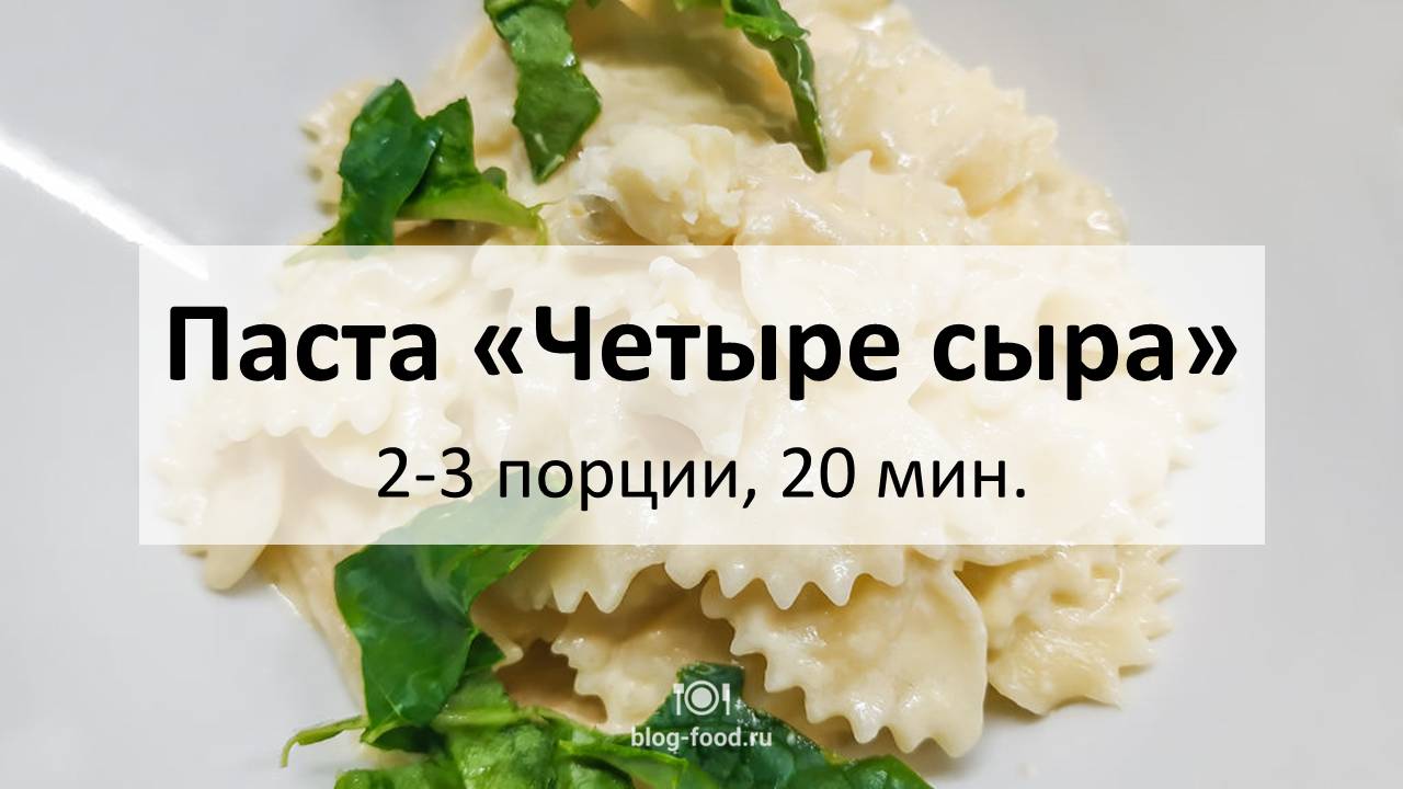 Добрый день! Если есть пицца с четырьмя видами сыра, почему бы не быть аналогичной пасте? У нас в качестве пасты используется фарфалле, но можно взять любую (тальятелле, спагетти, пенне и даже орзо), поскольку соус получится довольно густой и на любую пасту ляжет хорошо. Что касается сыров, то принцип такой же как и для пиццы — нейтральный, твёрдый, мягкий и пикантный с плесенью. В нашем случае это, соответственно, моцарелла, пармезан, чеддер и рокфорти, но никто не мешает взять, например, несолёный сулугуни, Джюгас, Гауду и Дор-блю. • Паста, 250 гр. • Сливки 10%, 200 мл • Чеддер, 100 гр. • Моцарелла, 50 гр. • Рокфорти, 50 гр. • Пармезан, 30 гр. • Лук, 1 шт. • Шпинат • Чеснок, 2 зубца • Чёрный перец, растительное масло, соль Чеддер и моцареллу натираем на крупной терке, пармезан на мелкой, рокфорти крошим ломтиками. Лук режем кубиком, чеснок мелко рубим, листья шпината рвём руками. Пасту отвариваем столько, сколько написано на упаковке. Обжариваем лук на сильном огне в течение одной минуты, добавляем чеснок, жарим еще минуту, вливаем сливки, доводим до кипения, убавляем огонь до среднего, добавляем все сыры и готовим, помешивая, 2 минуты, чтобы всё хорошенько растворилось. Добавляем сварившуюся пасту, перемешиваем, солим, перчим по вкусу, добавляем шпинат, прогреваем минуту и подаём. Приятного аппетита! Текстовая версия на сайте: https://blog-food.ru/1009 #кулинария #рецепты #еда #blogfood #рецепт #сыр #паста #сливки #итальянскаякухня