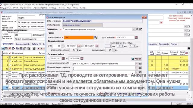 Урок 46. Как изменить приказ о расторжении трудового договора Кадровый учет Казахстан #КостанайСофт