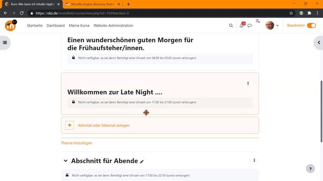 Wie kann ich Inhalte täglich zur gleichen Zeit anzeigen lassen? - Moodle 4