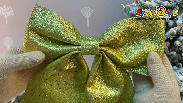 297116 Украшение елочное бант золотой с блестками 25см