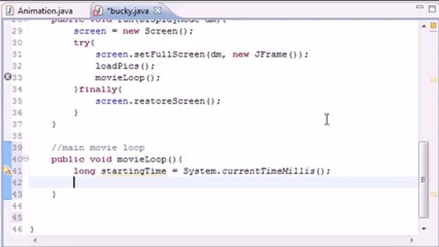 Main Movie Loop in Java Programming
