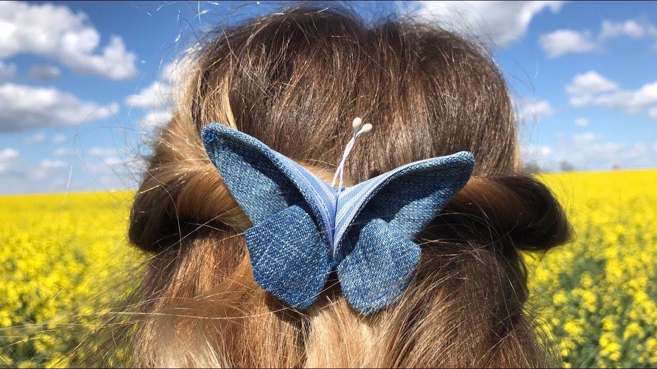 Заколка "БАБОЧКА" из кусочков ткани / denim hair clip