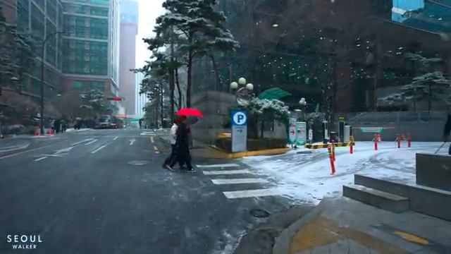 Снегопад в центре города, прогулка от Сеульского вокзала до мэрии - Звуки атмосферы в формате 4K HDR