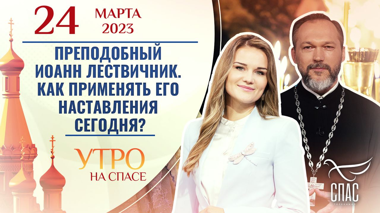 ?Доброе утро. Сегодня 24 марта, пятница. Церковь чтит память святителя Евфимия, архиепископа Новгородского. С Богом - в новый день. ? В это воскресенье и всю следующую неделю церковь будет чтить память преподобного Иоанна Лествичника. Поговорим о том, как мы можем применять наставления святого в нашей повседневной жизни. Как же держать пост, если семья против? Профессор Алексей Ильич Осипов даст ответы на сложные вопросы о нашей жизни, о церкви и богословии. В чем тайное значение чисел, встречающихся на страницах Священного Писания? Как и кому молиться за погибших? И можно ли молиться за некрещеных? Что такое смертные грехи? Какими они бывают и как с ними бороться? ? Обо всем этом мы поговорим в начале нового дня - в эфире программа «Утро на Спасе».