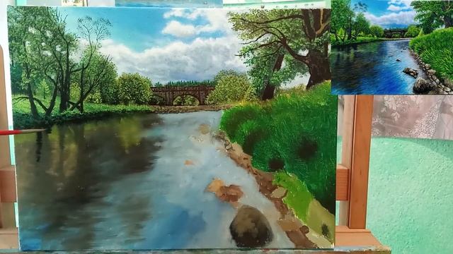 Пейзаж реки маслом|как нарисовать речку|Painting A River | Oil Painting Time Lapse art