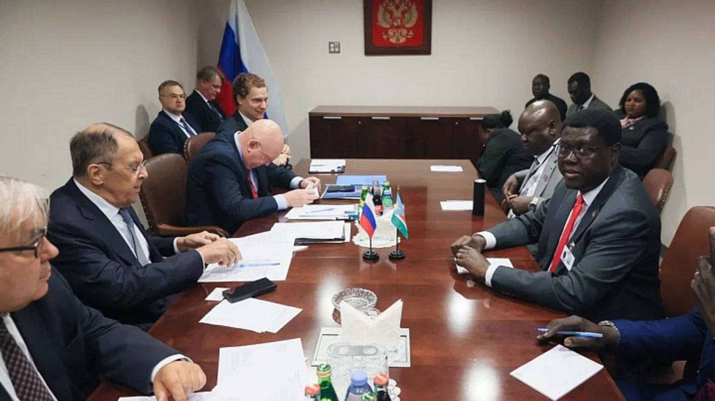 Начало встречи Министра иностранных дел Российской Федерации С.В.Лаврова с Министром иностранных дел и международного сотрудничества Республики Южный Судан М.Кумбой "на полях" 80-й сессии ГА ООН, Нью-Йорк, 25 сентября 2025 года