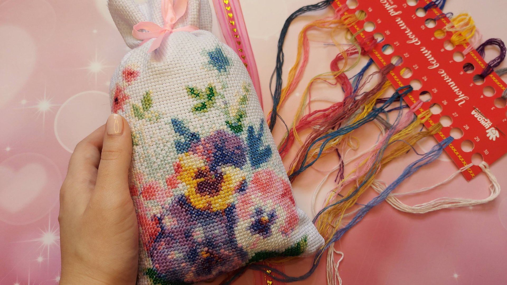 За окном зима, а в душе весна? День влюбленных уже совсем близко, хочу поздравить всех с наступающим праздником - Днем влюбленных!? И похвастаться своим маленьким творением, которое безупречно впишется в дизайн дома и будет радовать своего владельца день за днем❤ Размер вышивки в разложенном виде составил 28*17 см. Размер изделия: 14*23 см. Мешочек в продаже!?