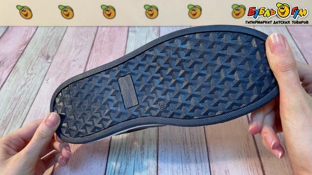 333538 Туфли TIBURON на липучках темно-синие с коричневыми вставками на язычке и сбоку